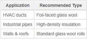 - High-density glass wool is better for industrial equipment or HVAC systems